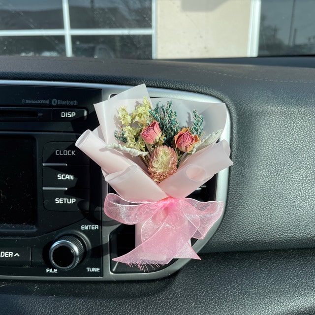 Handmade Mini Natural Dried Flower Bouquet Rosy Car Etsy